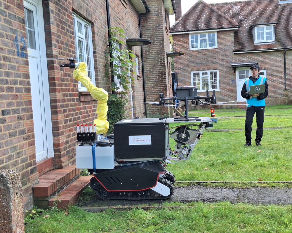 The University of Bristol’s Hot Robotics Facility has developed a comprehensive solution to spray-based urban decontamination and sampling. Through a combination of ground and aerial vehicles, this system utilises robotics to assist humans with urban decontamination, improving safety, efficiency and speed.